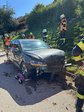 Die FF Pühret war trotz des parallel stattfindenden Feuerwehrausflugs mit 13 Einsatzkräften vor Ort. Gemeinsam mit der FF Atzbach wurde das stark beschädigte Fahrzeug geborgen. Dazu wurde zunächst ein Zaun entfernt, um Zugang zur Unfallstelle zu schaffen. Anschließend konnte das Elektroauto mithilfe einer Seilwinde aus dem Gefahrenbereich gezogen werden.